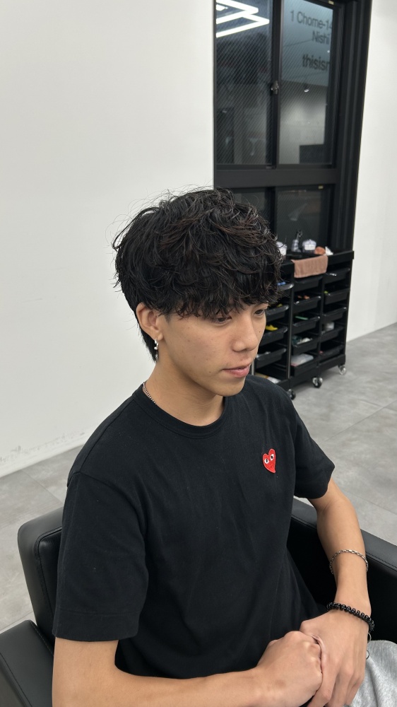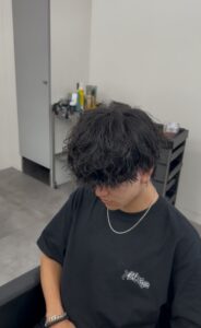 今やメンズパーマの定番となったツイストスパイラル。特徴は“無造作なのに計算された”立体感です。髪をねじりながら巻き込むことで、細かい動きとシャープな質感が同時に手に入ります。