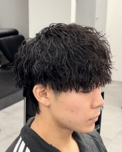 通常のパーマよりも無造作でラフな動きが出るため、ただ短いだけの髪型ではなく、“おしゃれな短髪”に変化させてくれます。細かいねじりとカールが合わさることで、動き・陰影・立体感が生まれ、どの角度から見てもかっこいいシルエットに仕上がります。